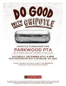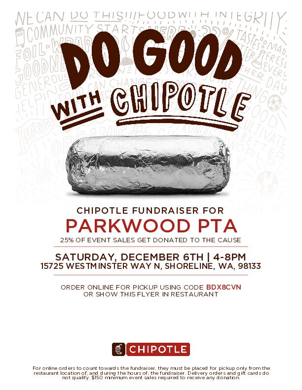 Order at the restaurant and show this flyer, or order online for pickup and enter code DBX8CVN at checkout! 25% of proceeds will benefit the PTA.